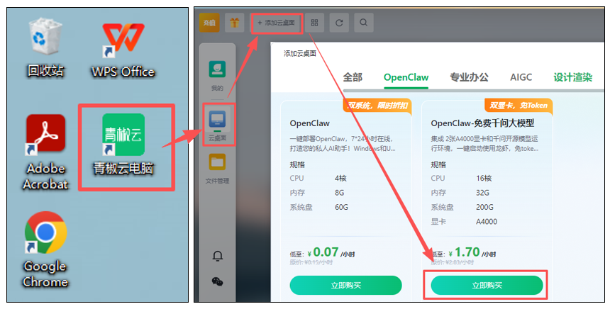 如果是自己部署在本地,不仅需要找懂技术的人员,而且还要花钱。最近,工信部等官方提示,“养龙虾”还有很多风险,需要把控。所以,为了安全、为了方便。大家可以选择青椒云的云桌面。