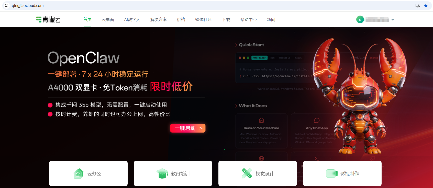 青椒云的【OpenClaw-免费千问大模型】产品,已经在云电脑安装好openclaw了,只需要点击云桌面的图标就可以启动。那么,青椒云openclaw怎么安装和使用呢?