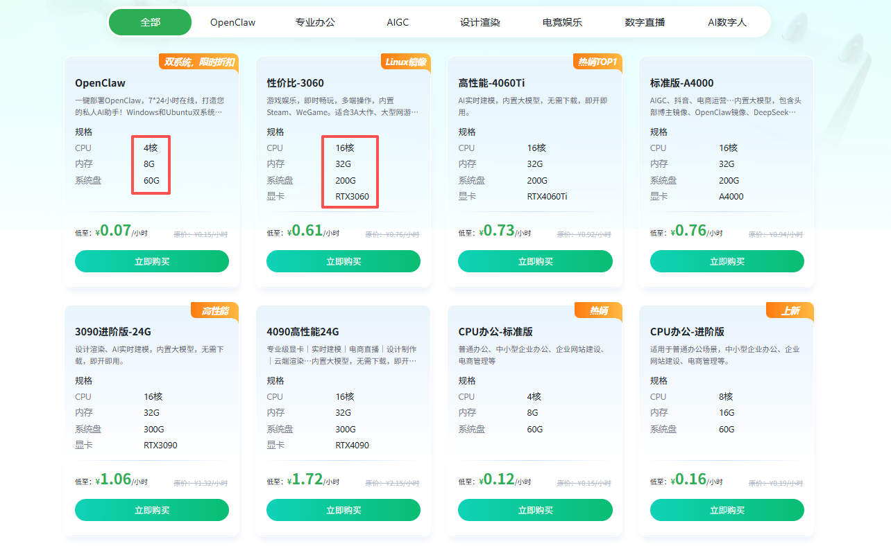 云电脑的配置选择范围远比实体 PC灵活得多,CPU、内存、显卡都能根据你的需求自由搭配。