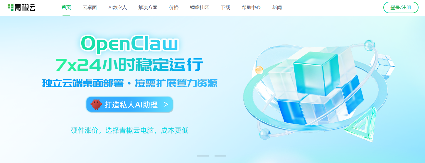 利用青椒云电脑搭建OpenClaw,接入im通讯软件,成为私人 AI 助理,需要的时候发一条消息,即可调动云桌面算力,实现 7 x 24 小时不间断跑服务。